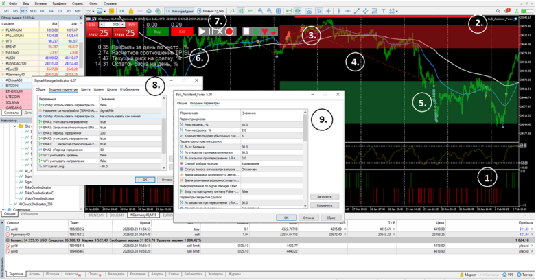 Вы можете настроить блок информации, для того что бы знать текущий риск, прибыль или убыток по инструменту за день, и др.